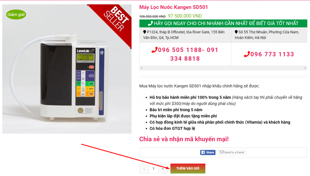 Cách 1: Đặt hàng trực tiếp trên website Vitamia.com.vn