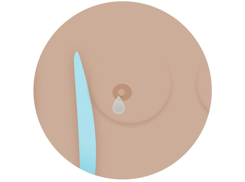 – Sau đó bạn dùng ngón tay cái và ngón tay trỏ nắn nhẹ núm vú xem có chảy nước vàng hay máu ra không?