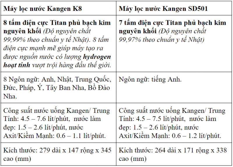 So sánh máy lọc nước Kangen K8 và Kangen SD501